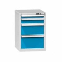 Zásuvková skříň je opatřená mechanismem centrálního zamykání a blokace zásuvek. Zásuvky jsou základním skladovacím prvkem, a proto splňují vysoké požadavky na pevnost a stabilitu. Korpusy zásuvkových skříní tvoří svařenec jednotlivých konstrukčních dílů z kvalitních ocelových plechů. Vnitřní konstrukce korpusů je opatřena perforací po 25 mm. Tuto perforaci využíváme k uchycení vodicích lišt zásuvek, jejich výškovému uspořádání a nakonfigurování požadované zásuvkové sestavy. Přestavování vodicích lišt nebo háčků polic probíhá jednoduše a velice rychle bez použití nástrojů.Zásuvkové skříně ZE4, 578 x 753 x 840 mm